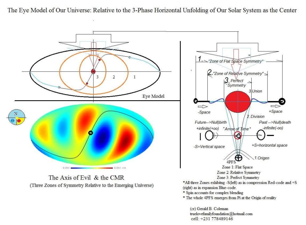 2.1 The acronym CBMR also has the Scientific definition called the “Cosmic Background of Microwave Radiation”. See the attached figure below representing what we call our EYE model of the Cosmos as One. Notice how according to this new model of reality Everything (ORIGIN) emerges from a Singularity called Paradise Isle (Pi), thus our Theology is a Theor of Everything.