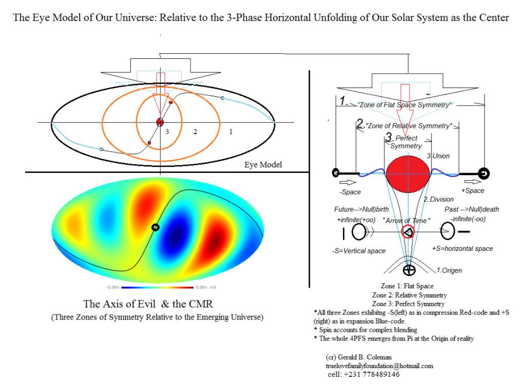 Figure-1: We refer to this as the EYE Model of our Cosmos. Science has observed the existence of what they call the Axis of Evil. This Axis gauged our Solar System is the Centre of the Cosmos.