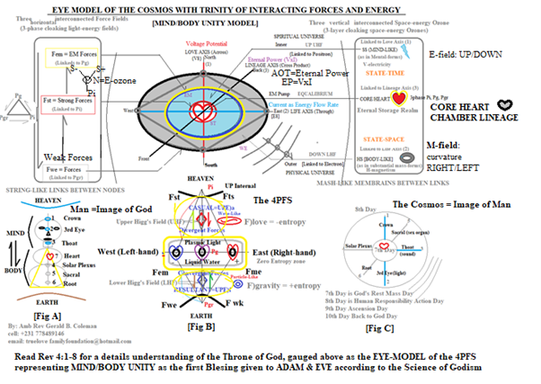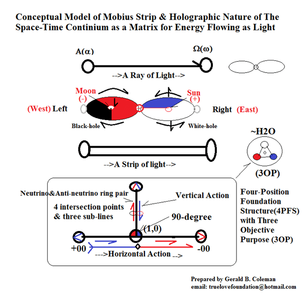 Notice, the absolute range of vertical energy between Heaven and Earth is double infinity (2×00) in the image of a double helix coiling around itself like a Mobius Strip (see fig 4b,5)! This is how we envision the SU and PU co-existing centered on God entangled together as One Flesh. We refer to this as the Trinity Partnership (TP) of God’s Energy. From the viewpoint of science, it would be impossible to measure reality if it is in the form of “the ONENESS OF EVERYTHING”. For this reason, God the creator had to develop a way to gauge LIGHT so that it could be used to create everything while keeping its equivalent ONENESS via a standard model metric (SMM). Thus, we have the Electromagnetic Energy Spectrum with PHOTONS as the common gauge but with different frequencies and wavelengths (c=lf) with the collective moving at the speed of light. Notice a photon unlike a RAY of light, has a unique beginning and a unique end gauged by the 4PFS with a unique frequency and wavelength. For this reason, Heavenly Parents introduced themselves in the bible more than 5 times as the Alpha and the Omega. They are the Universal beginning and end of all LIGHT PHOTONS. Thus, the Science of Godism sees God as the Alpha beginning of EVERYTHING, and Humankind centered on the proper coupling of MAN/WOMAN UNITY (God’s ordained Object Partners) as the Omega and end of EVERYTHING linked to the ground state, gauged to move freely under the influence of the Holy Spirit/Holy Ghost presence of God, as the free flow of TOTAL ENERGY. Notice “God the Father” (Holy Spirit) is symbolized as having 2D SUN symmetry, while the Adam and Eve linked to “Mother the God” (Holy Ghost Spirit) are symbolized as having 3D MOON symmetry. In Figure 3 we developed a Universal Circuit Theory modeling the Universe as a compound, complex, convoluted energy network linked to c^3. Where the smallest component of this network can be modeled as a Super Computer layout in Spacetime (R(s,t) linked to an 8D circuitry. In Fig 4b we strive to show different models of the SUN/MOON circuit as the DC Source with all the 8 Planets as differential SINKS, four internal and four externals. This is a 4PFS model of our Solar System.